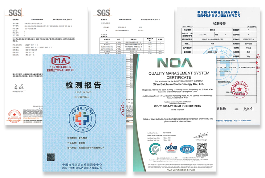 ?? 陜西百川生物生產基地以安全與品質兼顧為主要考量,追求高品質產品,并有一套近乎嚴苛的溯源管理體系,確保從原材料、制造生產、加工包裝、制程管理皆環環相扣,實時監控,保障品質。并且西安百川生物生產基地已通過ISO22000(食品安全管理系統)及HACCP(危害分析與關鍵控制點)體系認證,并通過SGS、譜尼等國際權威第三方檢驗平臺認證。陜西百川生物始終秉持“讓地球更美麗,讓人類更健康,讓生態更和諧”的企業使命,不斷加強生產基地對食品安全的管理,確保產品穩定制造與產品安全。 ?